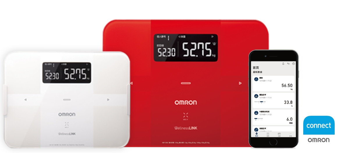 產品具有藍牙傳輸功能。將量測到的數據上傳至「OMRON connect」,輕鬆查看體組成變化。