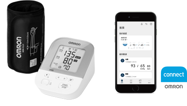 產品具有藍牙傳輸功能,將量測數據上傳至「OMRON connect」。輕鬆查看血壓變化,省去紀錄血壓數值的麻煩,更方便於看診時提供給醫師判斷。